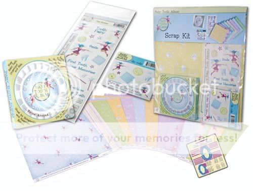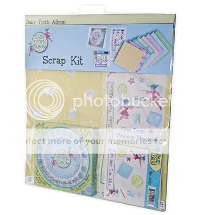 Click to zoom.Baby Tooth Scrap Kit:If you like scrapbooking, then you’ll love our complete Scrap Kit. The magic of nearly all of our products is contained in this one-of-a-kind scrap kit. Complete with our Baby Tooth Album tooth organizer, 8 beautifully patterned papers, 1 tooth fairy sticker sheet, die cuts and our very own “Baby Tooth Chart”.Let your imagination run wild as you make your child’s very own customized "Baby Tooth Scrap Page".Includes:• Baby Tooth Organizer• 8 beautifully patterned premium scrap papers• Tooth Fairy sticker sheet• Die cuts• Baby Tooth ChartFits in all scrapbooks!Buy it for your child or a child you love !Details:A complete baby tooth scrap kit for your scrapbook! If you enjoy scrapbooking, then you’ll love our complete baby tooth scrap kit. The Baby Tooth Album line of products is a wonderfully sentimental way to properly organize and cherish a child’s precious baby teeth and never worry about losing them again.The only scrappable baby tooth keepsake, the Baby Tooth Album is specially designed to be lightweight and lie flat on a page. Use the included tooth fairy inspired papers, stickers and die cuts to embellish a whimsical scrap page dedicated to your child’s precious baby teeth.